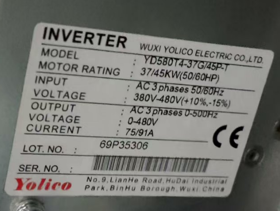 The motor is 45KW, the rated current is 91A, rated speed is 1480rpm. Based on the motor model, the inverter model YD580T4-37G/45P-T is selected , which with a rated current of 91A.