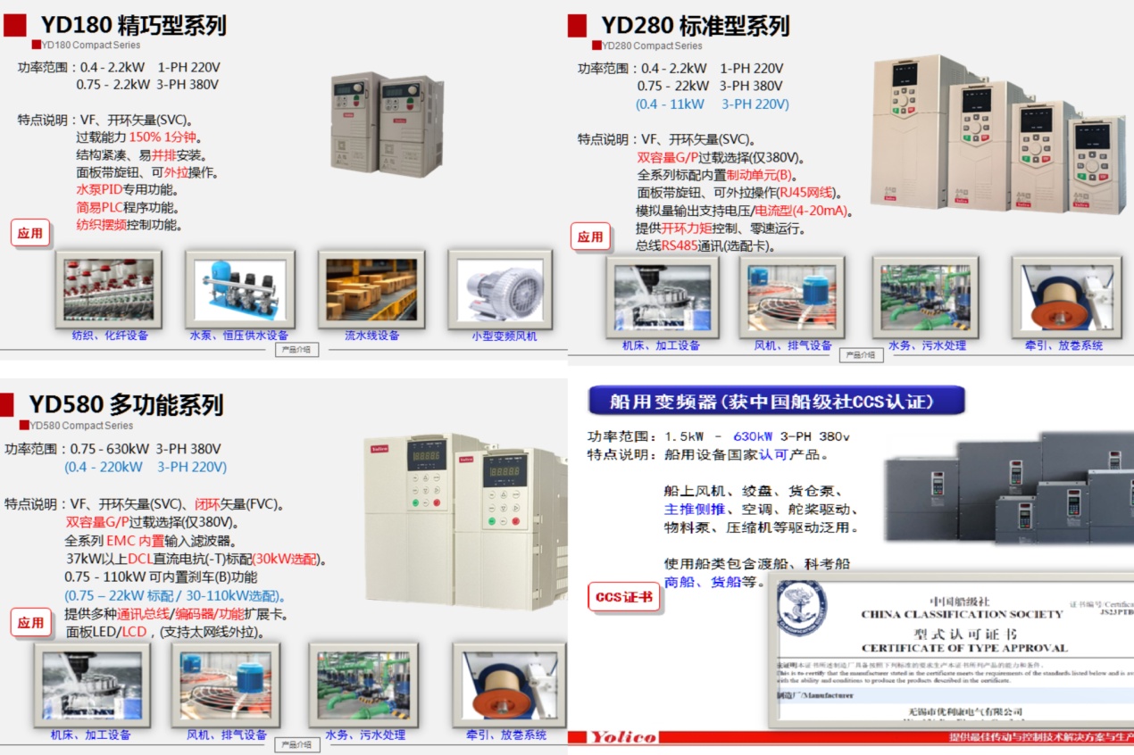 - YD3000N-CCS船用:獲得CCS中國船級社認證,支持船用推進系列、空調(diào)水泵等傳動設(shè)備。